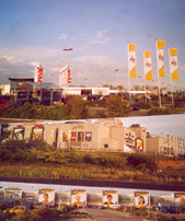 Much of the leftovers had a rural character. Like dandelions and pink leaves or wood. It seems to me that Berlin always had a rural glow. Probably due to the urban factor as Helena had explained to me, long wide roads and relatively low houses. In contrast to the Potsdammer Platz , where Sony's and other brand new buildings offer an urban image like everywhere. And what to think of the shopping mall near Wusterhausen in the south east of Berlin. The size of the estate made it impossible to get a good picture. Apart from shops the building hosts discos, restaurants, movie theatres etc. This alien in the midst of small
